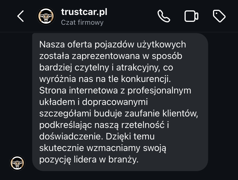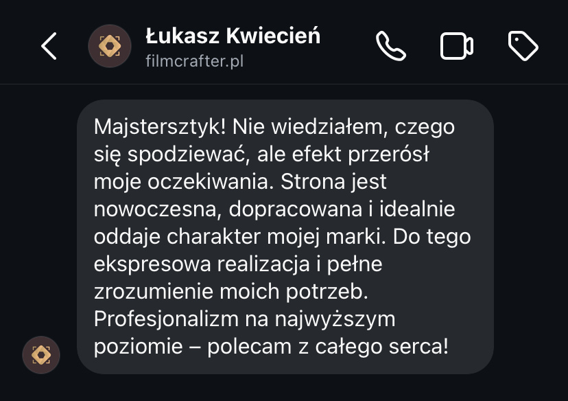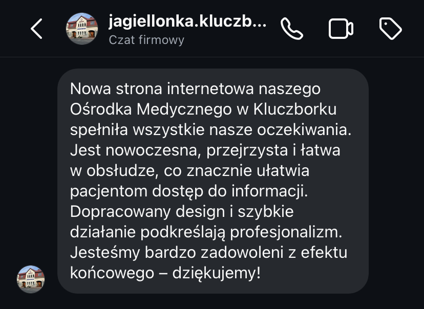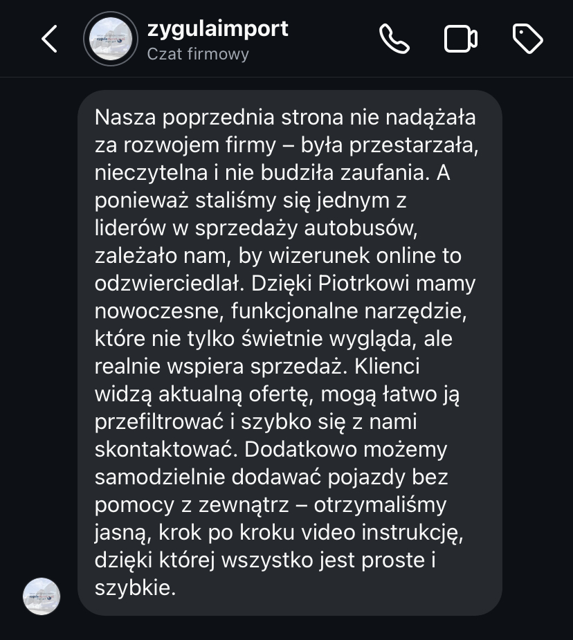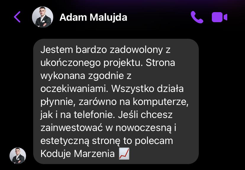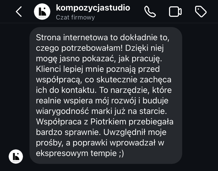 „Moja strona, która była bardzo przestarzała, teraz wygląda bardzo profesjonalnie. Zwiększyła się ilość kontaktów poprzez formularz kontaktowy. Mam coraz więcej zapytań.”