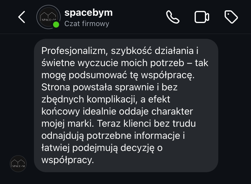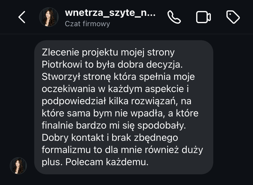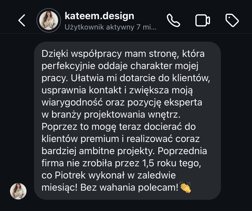„Po rozpoczęciu działalności jedna z pierwszych myśli to była strona internetowa. To był pierwszy krok, który poprowadził mnie do klientów premium. Jestem bardzo zadowolona.”